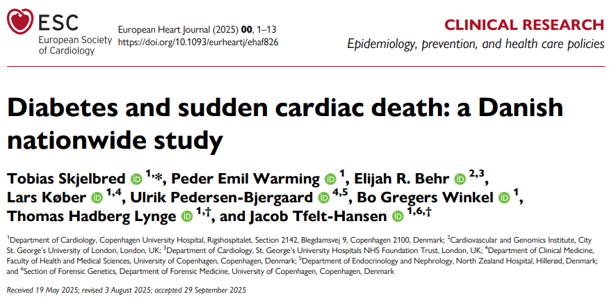 最近《欧洲心脏杂志》上一篇来自丹麦的全国性大型研究,通过分析当年全国5万多例死亡病例,并对比其中1型、2型或无糖尿病人群突发心脏死亡率发现,1型和2型糖尿病患者出现突发心脏猝死的风险分别高于正常人的3.7倍和6.5倍,而且高发于50岁以下的糖尿病人群,其中30-40岁人群的发生率更是达到了正常人的22.7倍。