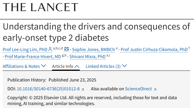 [1] Lim L L , Jones S , Cikomola J C ,et al.Understanding the drivers and consequences of early-onset type 2 diabetes[J].The Lancet, 2025, 405(10497):2327-2340.