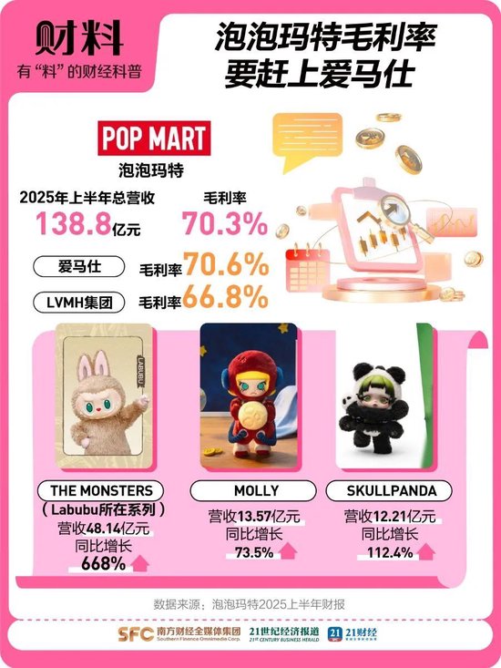 2025年上半年,共有13个艺术家IP收入过亿元,其中THE MONSTERS、MOLLY、SKULLPANDA、CRYBABY和DIMOO在报告期内分别实现收入48.14亿元、13.57亿元、12.21亿元、12.18亿元和11.05亿元。